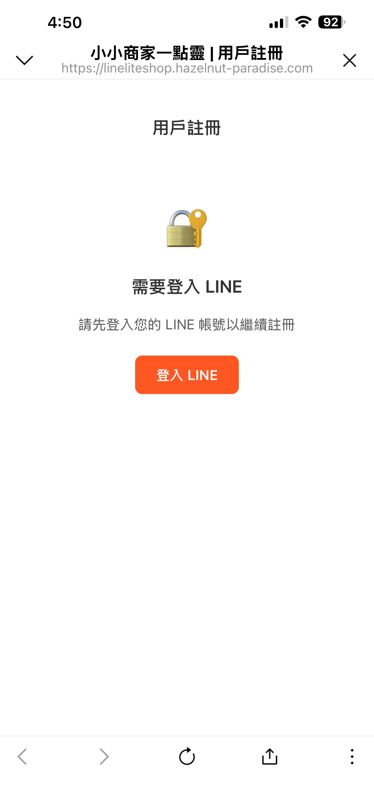 點擊「點餐」或「我的訂單」按鈕,如果尚未登入(第一次使用或是太久沒用)會跳到登入畫面,只要點「登入 LINE」就會自動用 LINE 帳號登入。