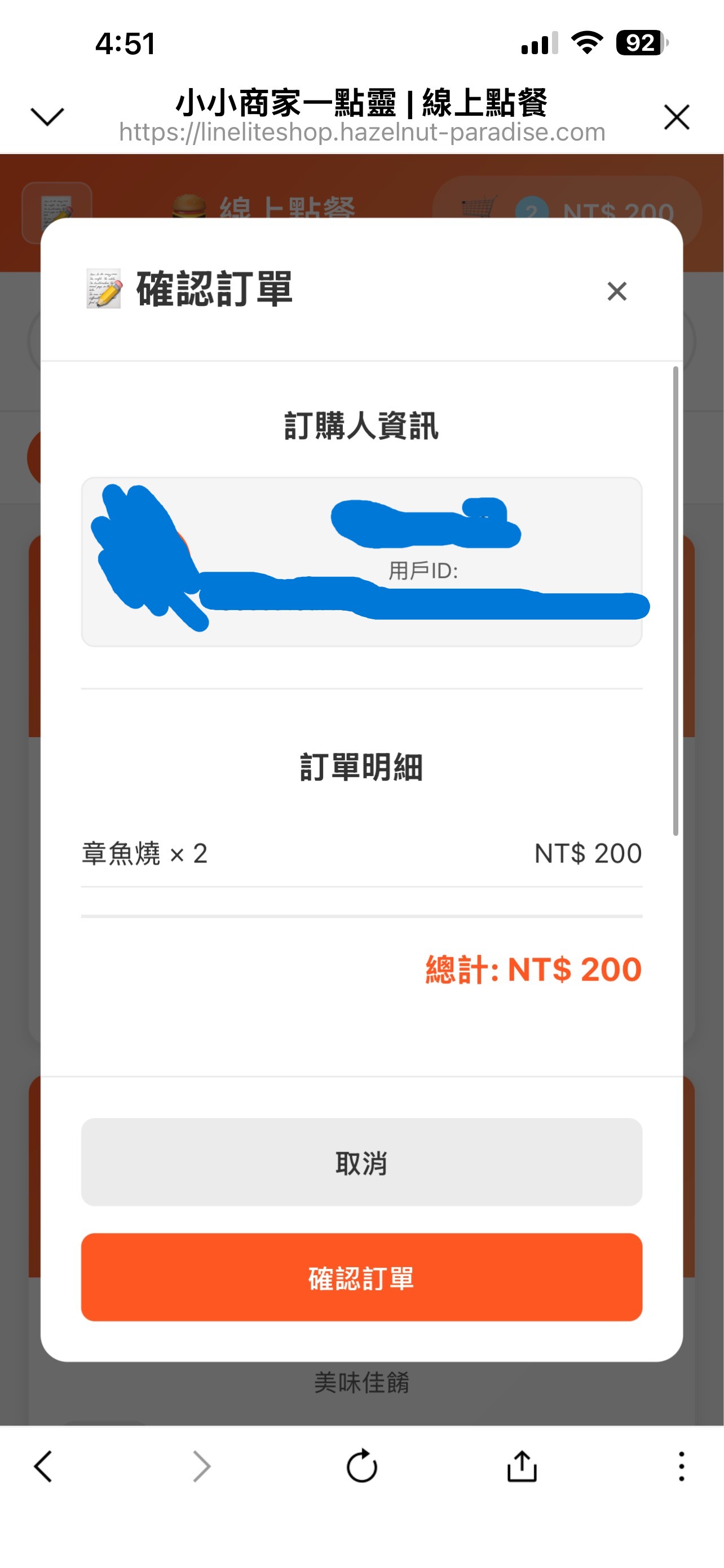 LIFF App:在 LINE 官方帳號中,點擊選單上的按鈕之後打開的點餐或訂單頁面。