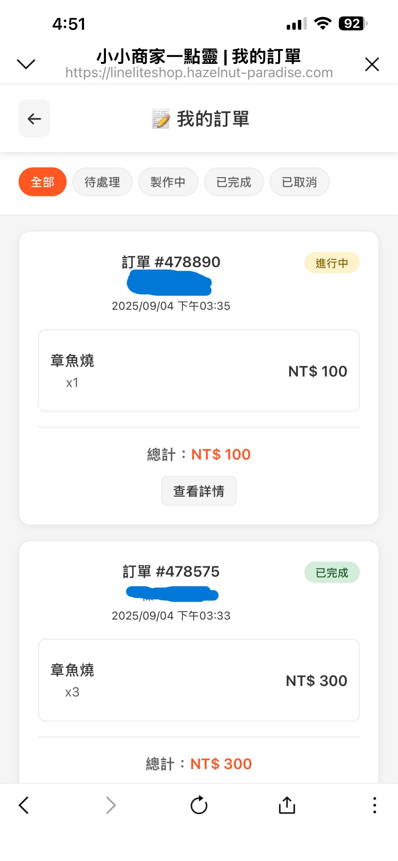 訂單頁面