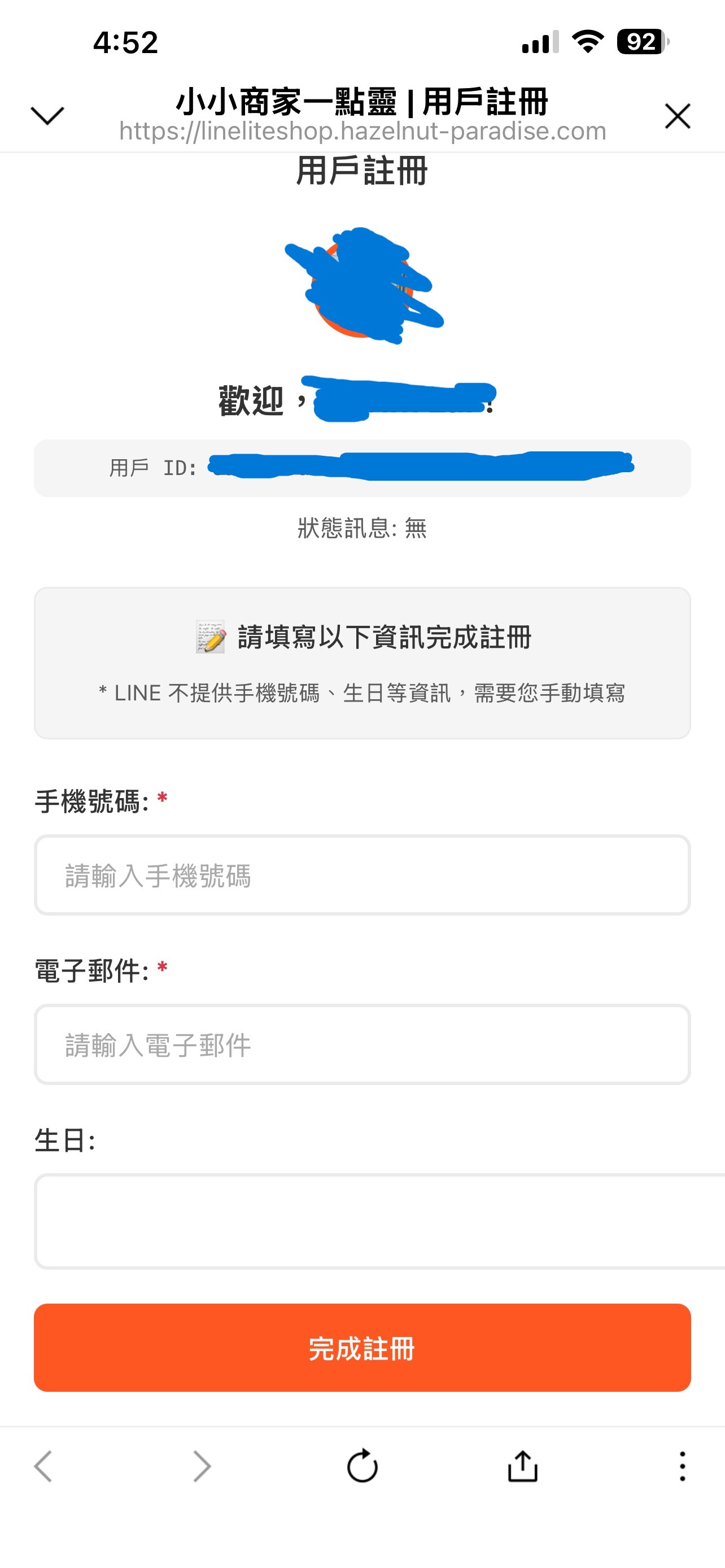 如果是第一次使用,會需要輸入基本資料完成註冊。