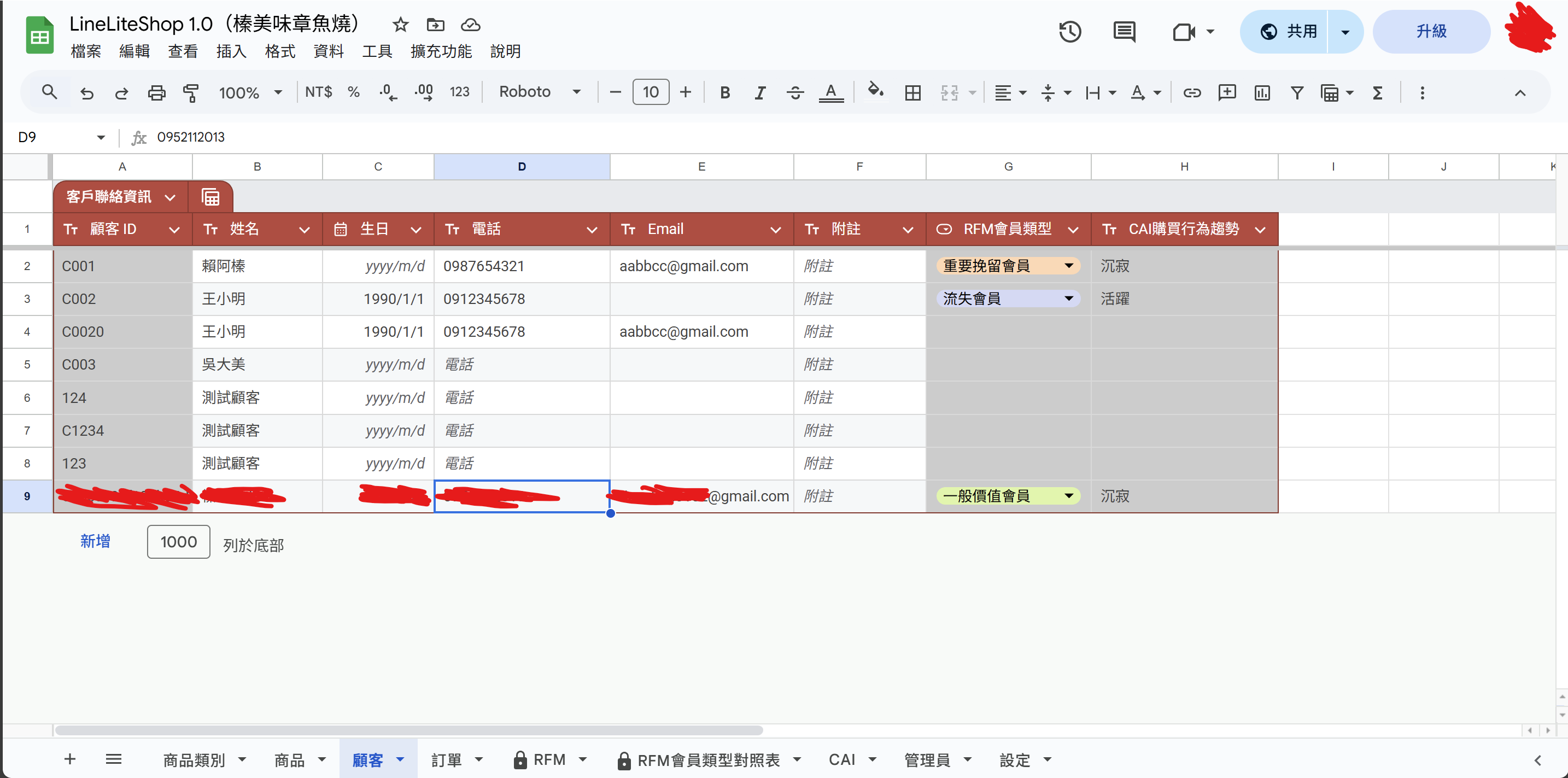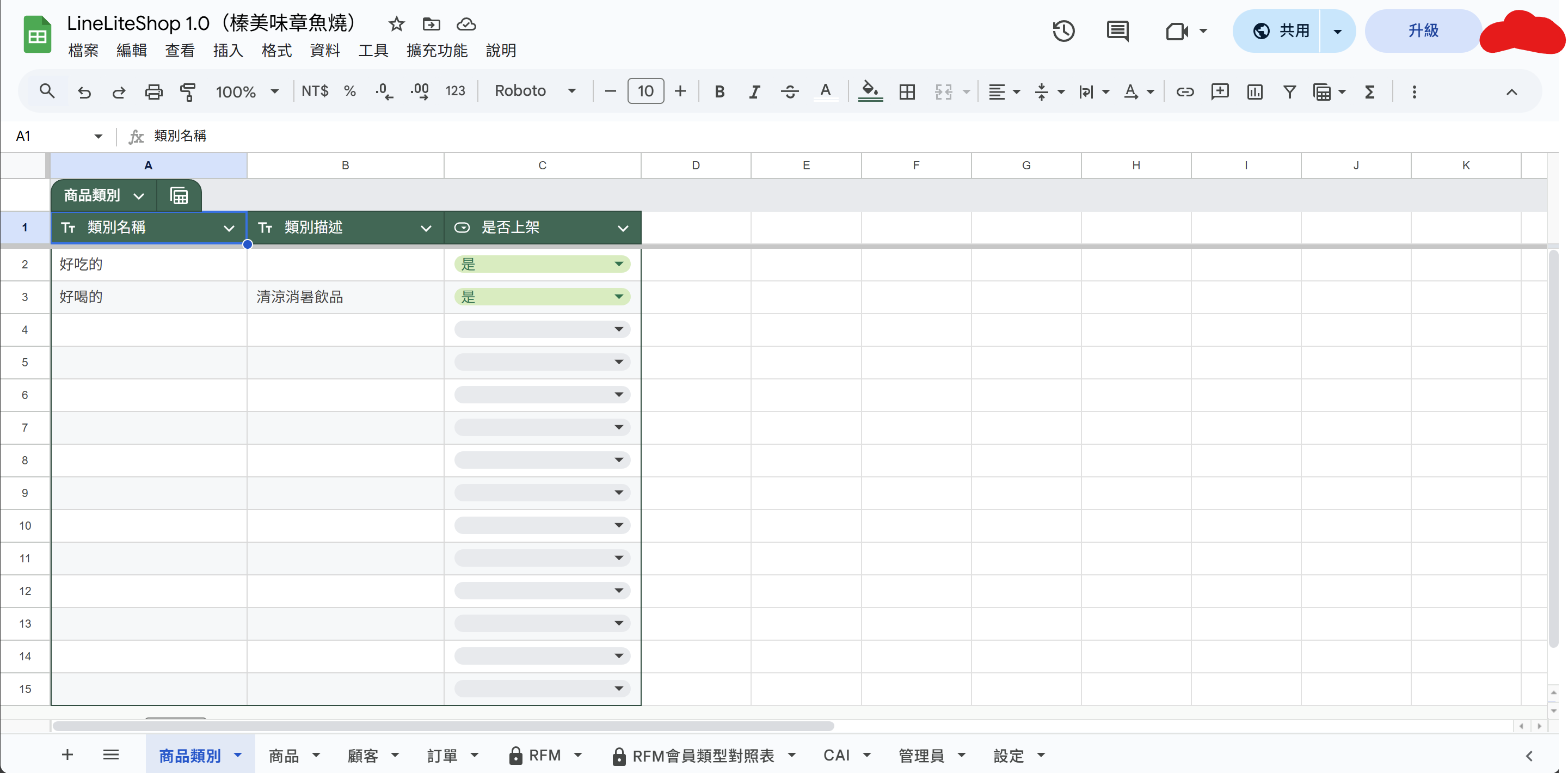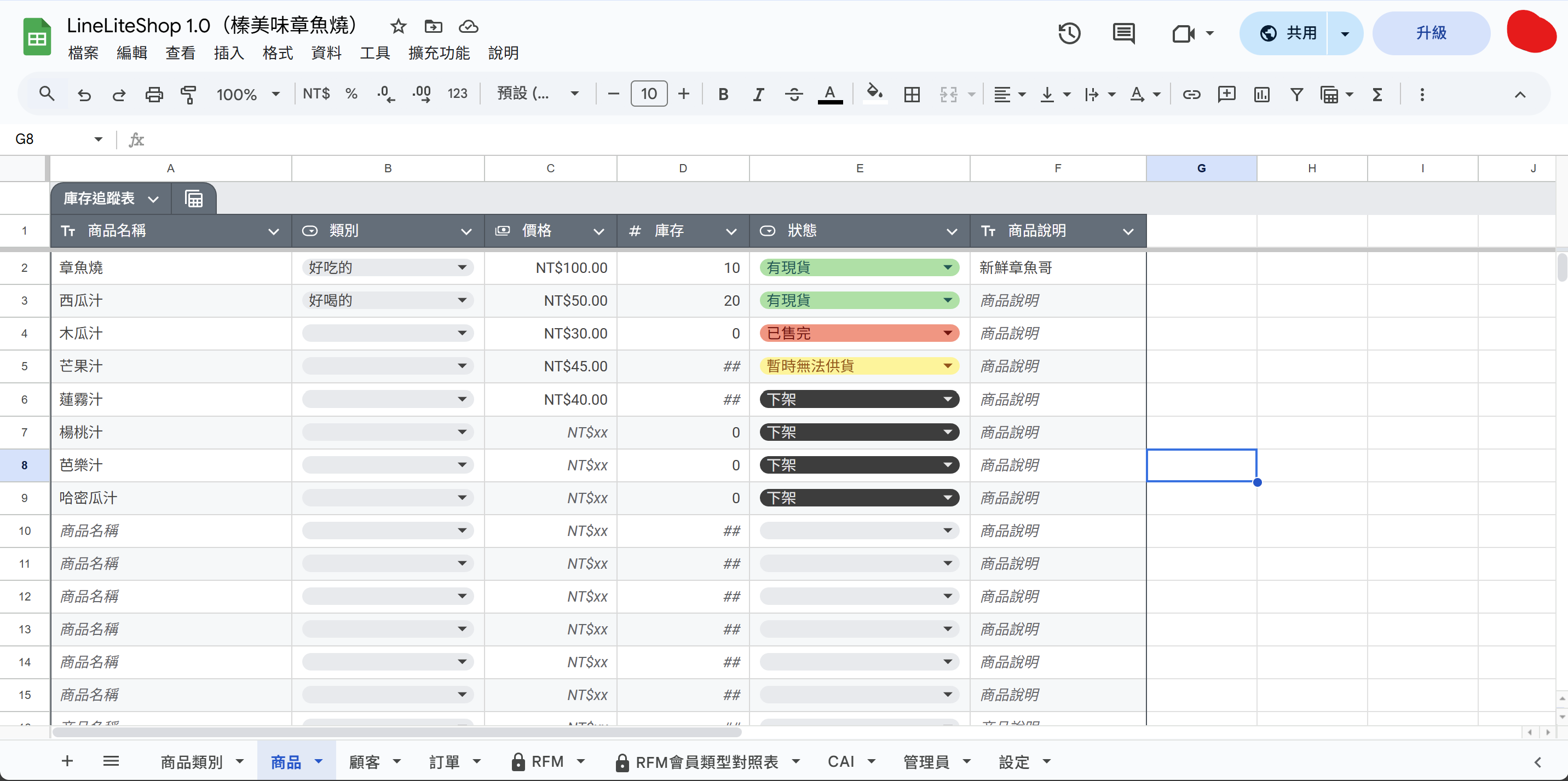 商品與顧客管理功能(Google 試算表)